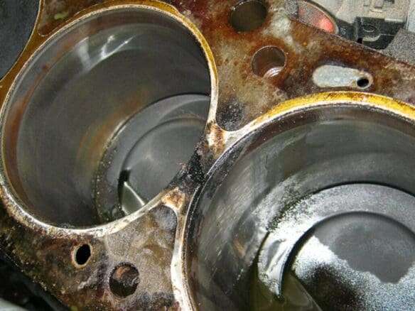 - Incorrect cylinder sleeve installation. ( Possibly too much crush, causing a cylinder to distort and leak )