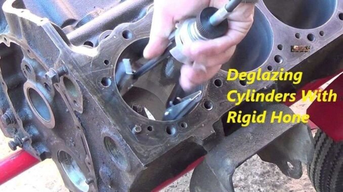 The cylinder bore deglazing process is basically, removing the glaze from your engines cylinder walls.