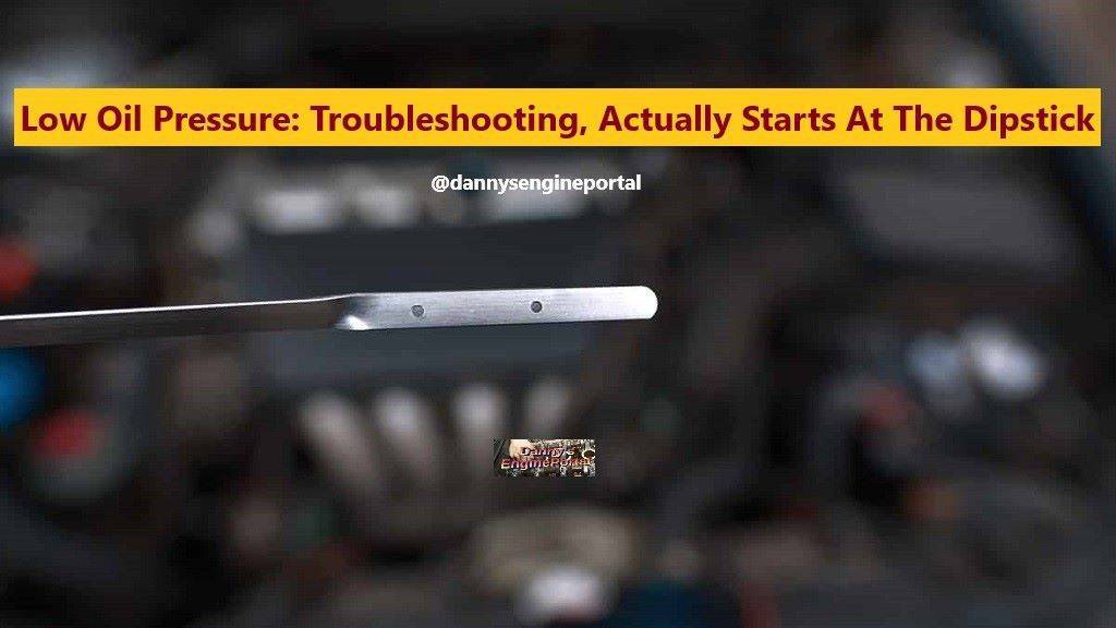 A good place to start troubleshooting, low oil pressure conditions, is at the dipstick. Check the oil level to see that it is, at the proper level.